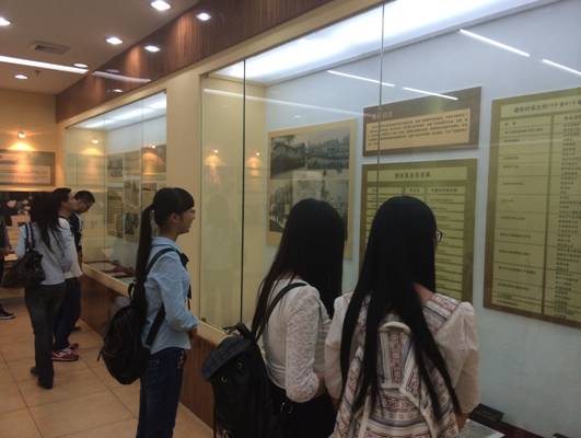 同学们认真观看馆内史料