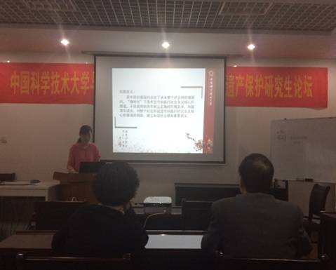 图为邱玲玲进行论文汇报