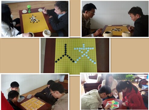 活动原先计划为象棋比赛,不料同学们到达棋牌室后,发现了更多棋牌种类,有围棋、五子棋、跳棋还有陆战棋,大家的热情一下子被点燃了,于是比赛现场就分成了好几个赛区,首先开战的是跳棋比赛,两名同学的交战,你走我跳,以退为进,简单的跳棋游戏令大家纷纷想起了自己单纯快乐的童年时光。再看五子棋赛场,游戏简单却也相当考验大家的智慧,想要快速取得胜利也不是一件简单的事情,有时两名对手打到满盘棋子却还没分出胜负,最后握手言和,一派和气融融。最受大家关注的便是象棋比赛,象棋游戏难度较高,两人比赛多人观赛,比赛的人眉头紧锁,走一步却也把后面的路都想好了,观赛的人比参赛的人还紧张,你退我进,大家深陷其中,玩的不亦乐乎。