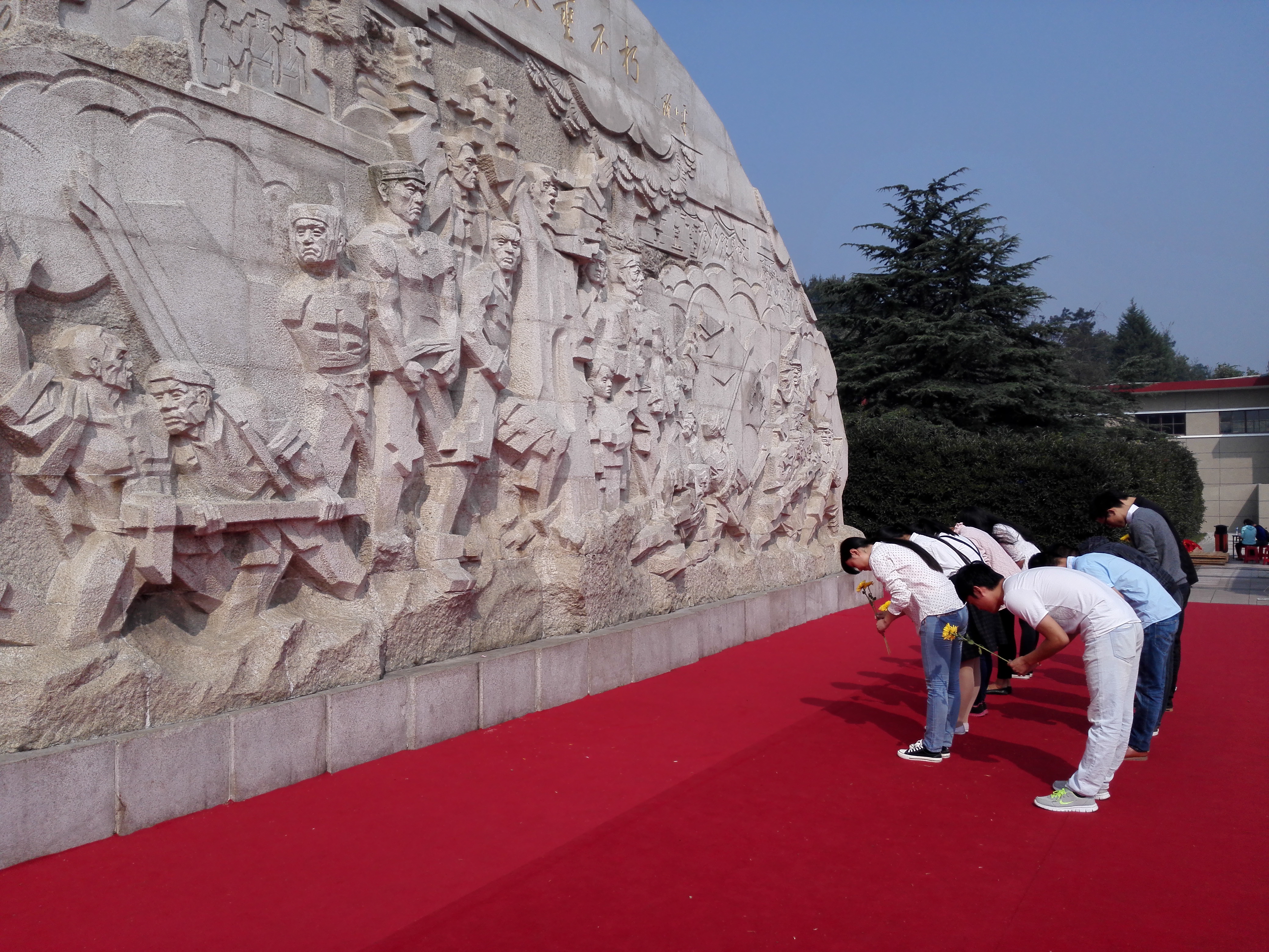 10月17日的上午,社会科学研究生党支部赴大蜀山烈士陵园,举行祭奠烈士仪式等活动。在青山绿水,鸟语花香的大蜀山长眠着为新中国的成立而贡献出自己的生命的英雄,社会科学研究生党支部党员及预备党员带着崇敬的心情参拜烈士陵园。仪式的第一项是在英勇雄壮的国歌声之中,党员带着沉重的心情缅怀英雄。