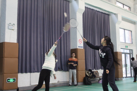比赛本着“友谊第一,比赛第二”的原则,以运动的形式促进同学们之间的交流和默契,采用多种多样的形式,分别有男单女单、混双、男双女双。比赛开始,由担任裁判的许阳同学为大家简要介绍了一下比赛的规则和注意事项。球场上打球的同学很快就进入状态,只见羽毛球随着拍子在空中划过一道又一道美丽的弧线。场下时而传来阵阵的惊呼“好球!好球!”,极大地活跃了现场的气氛。