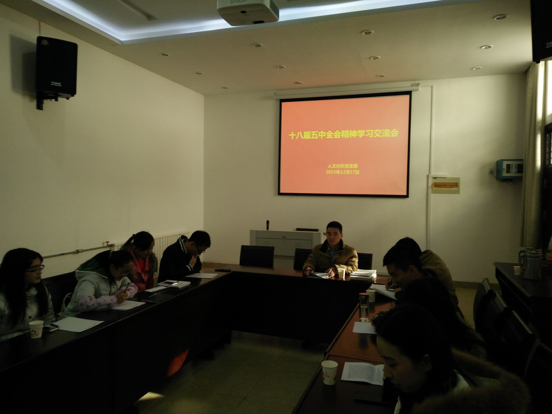 为深入学习和贯彻党的十八届五中全会精神,紧跟安徽省委教育工委关于《中共安徽省委教育工委关于组织开展党的十八届五中全会精神进校园活动的通知》的重要部署。12月19日,社会科学研究生党支部组织党员、入党积极分子和群众集中学习、讨论党的十八届五中全会精神。