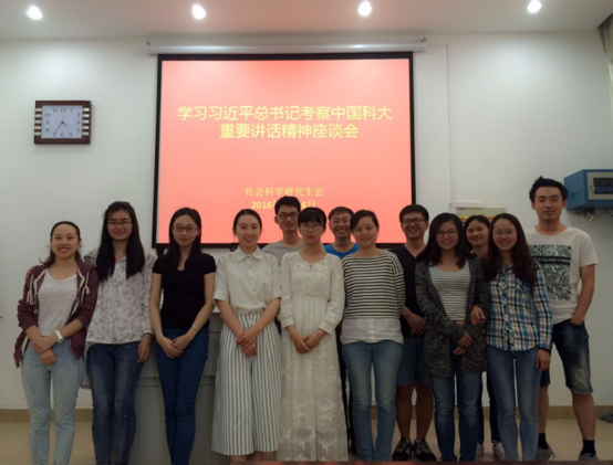 5月16日下午,社会科学研究生会在人文学院105多媒体教室举行了学习习近平总书记考察中国科大重要讲话精神座谈会,马克思主义学院副院长汤俪瑾出席会议,全体社科研会成员及社科类硕博班代表参加了会议。