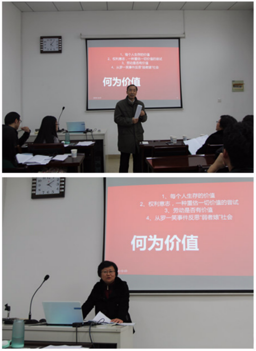 在六位同学发言完成后,汤老师做了总结点评,真诚感谢老师及同学们的大力支持与热情参与,感叹马克思主义哲学的勃勃生机,学问的开展离不开师长的教导,学子的勤学好问,学问的传承更是一代前人育后人。