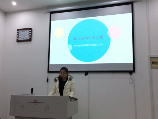 2016年12月14日晚17:30,2016级社科硕博班团支部于南平105开展主题为“学习感动中国人物”的团日活动。2016级社科硕博班的同学积极参与了此次活动。活动由团支书江赛民同学主持召开。