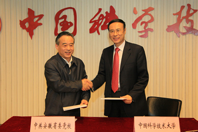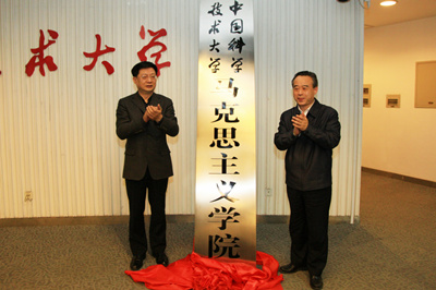 2016年3月10日下午,我校与中共安徽省委党校签署协议,共建中国科学技术大学马克思主义学院,并为学院成立举行揭牌仪式。中共安徽省委党校常务副校长张岳峰,副校长王正国、金乃俊、邓玉明,教育长胡忠明,我校党委书记许武,校长万立骏,副校长陈初升、朱长飞,校长助理王晓平,中共安徽省委党校有关部门负责同志、教师代表,我校相关职能部门负责人、人文与社会科学学院负责人以及师生代表参加了揭牌仪式。揭牌仪式由校党委副书记蒋一主持。