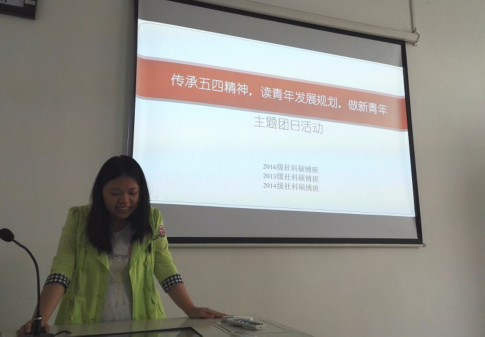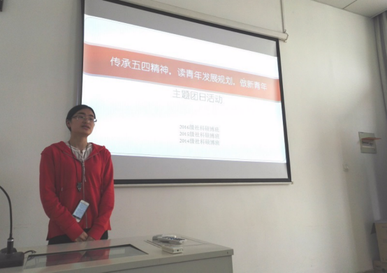 2017年4月25日下午,人文与社会科学学院社科团总支隶属的三个支部——2014级、2015级、2016级社科硕博班团支部,在人文学院南平102教室联合开展了 以“传承五四精神,读青年发展规划,做新青年”为主题的团日活动。时值习近平总书记2016年4月26日考察中国科大一周年前夕,暨庆祝即将到来的中国共青团建团95周年,纪念五四运动98周年,意义重大。