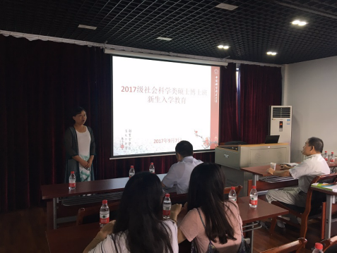 2017年9月7日下午,社会科学党总支举行了社科类硕博班师生见面会暨2017级社科硕博班新生入学教育。本次会议由马克思主义学院副院长、社科硕博班班主任汤俪瑾老师主持,人文学院党委书记屠兢老师、科技哲学部教学秘书汪捷老师、马列部教学秘书李清梅老师出席了本次会议。