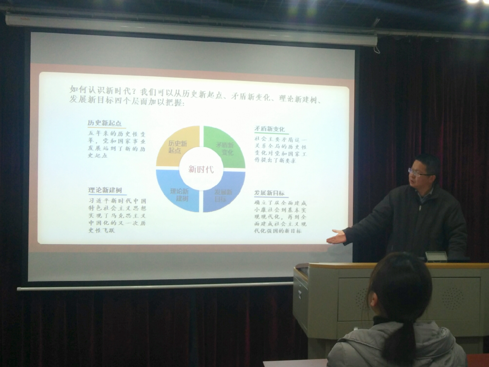 宣讲伊始,叶政博士指出,“经过长期努力,中国特色社会主义进入了新时代,这是我国发展新的历史方位”,党的十九大作出的这一重大政治论断,是从党和国家事业发展大局出发,从历史和现实、理论和实践、国内和国际结合上思考得出的正确结论。这一论断,清晰地指出了党和国家事业所处的时代坐标,为明确下一阶段的历史任务、坚持和发展中国特色社会主义指明了方向。