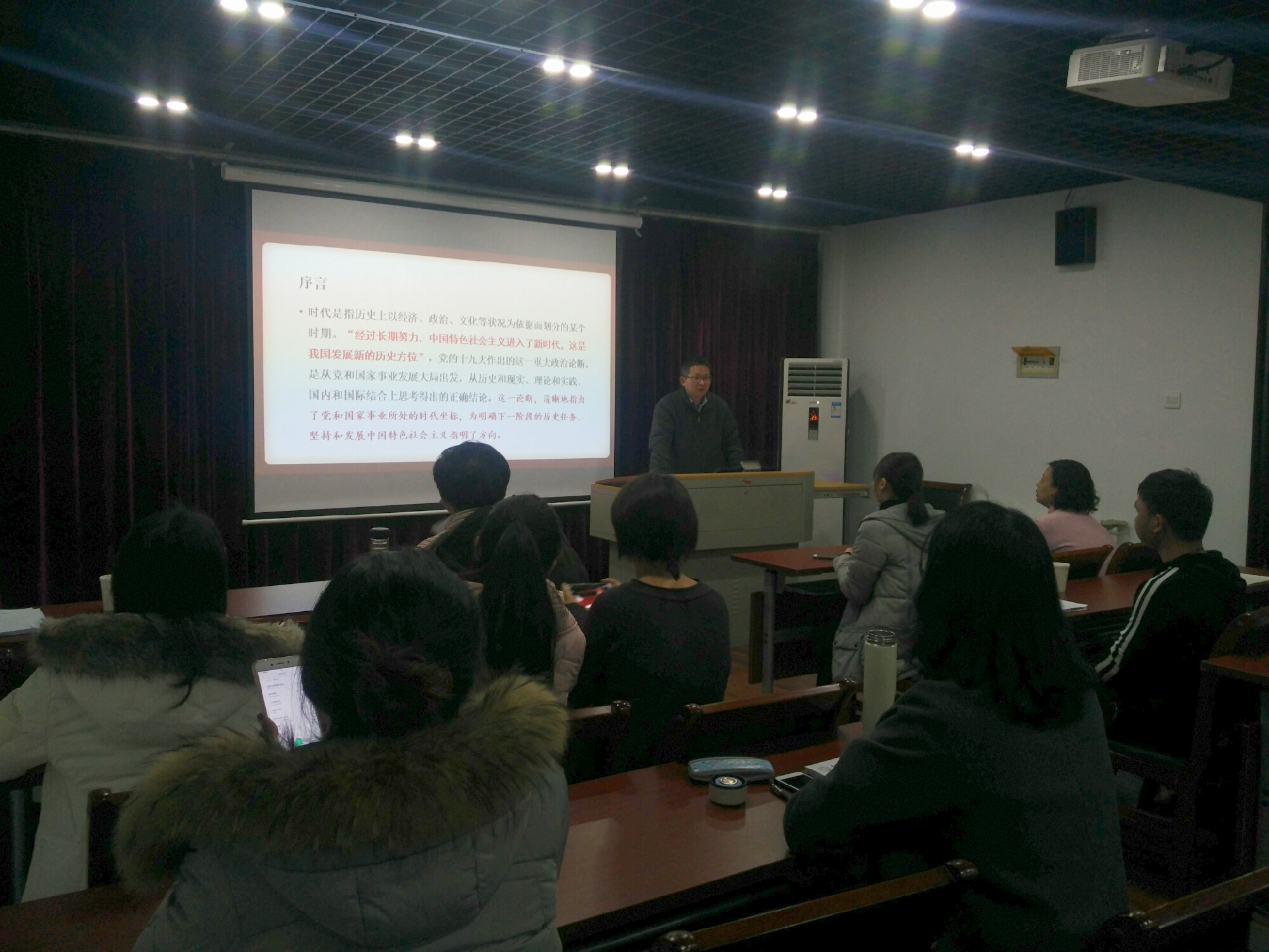 2017年12月13日,安徽省“放飞新时代青春梦——十九大精神走进青年”百人宣讲团成员、中国科学技术大学十九大精神宣讲团成员叶政博士,为马克思主义学院研究生做了党的十九大精神的宣讲,着重阐释对于“新时代”的理论解读。