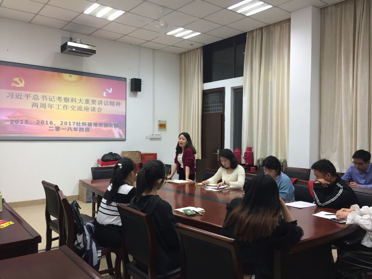 在随后的交流座谈会上,支部成员畅谈了学习体会和感悟。大家表示习近平总书记在我校考察期间,指出“青年是国家的未来和民族的希望。希望同学们肩负时代责任,高扬理想风帆,静下心来刻苦学习,努力练好人生和事业的基本功,做有理想、有追求的大学生,做有担当、有作为的大学生,做有品质、有修养的大学生”,这“六有”饱含了总书记对青年学生的殷切期望,也是党中央在新时期对高校人才培养的新要求。作为科大学子,我们更应该以总书记的寄语作为自己前进的方向和行动的标杆,心无旁骛,严谨治学,学成文武艺,争做“六有”大学生,报效祖国和人民,报效中华民族。