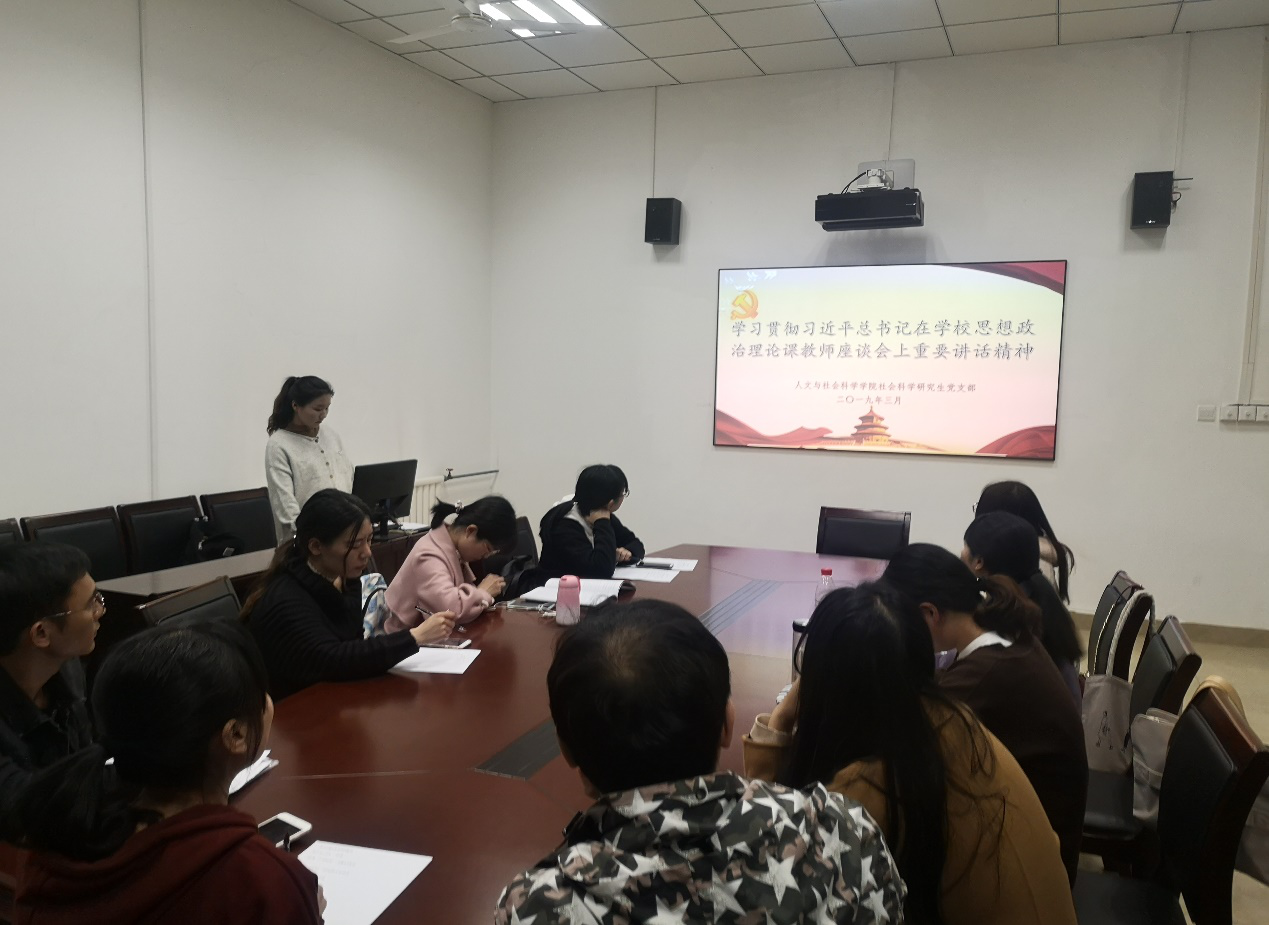 最后,王慧楠组织开展了学习习近平总书记在学校思想政治理论课教师座谈会上重要讲话精神的座谈交流会。会上,大家观看了新闻联播对于学校思想政治教育教师座谈会的详细报道。习近平总书记的讲话强调了办好思想政治理论课,最根本的是要全面贯彻党的教育方针,解决好培养什么人、怎样培养人、为谁培养人这个根本问题,并从“从学校抓起,从娃娃抓起”、“要理直气壮开好思政课”、“有基础、有条件把思政课越办越好”、“关键在教师”、“8个统一增强思想性、理论性和亲和力、针对性”、“全党全社会努力办好思政课”六个方面阐述了办好高校思想政治理论课的重要性和必要性以及对怎样办好思政课做了解答。