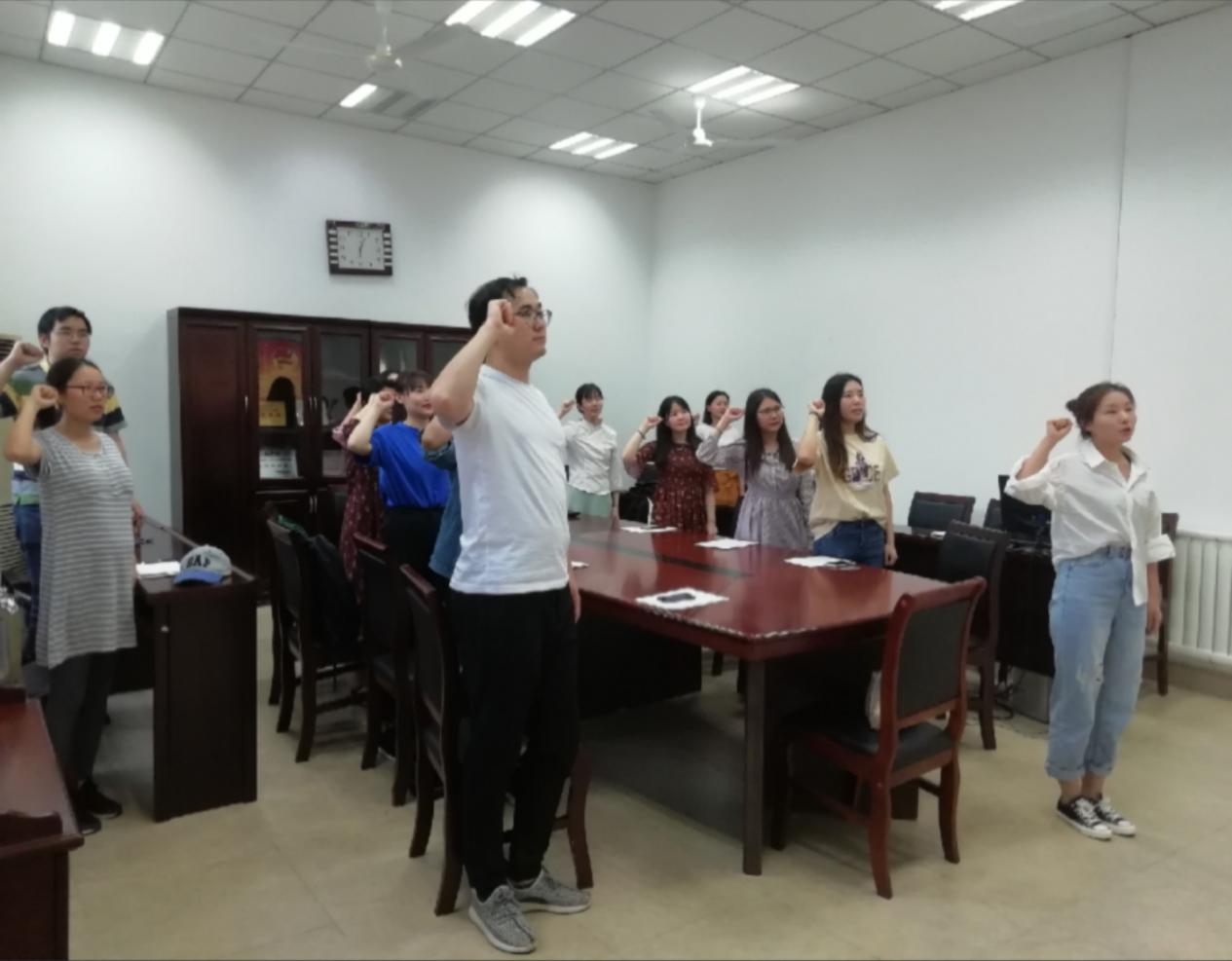 与会党员充分讨论交流,现场气氛积极热烈。2017级研究生张莎莎从“感动”“触动”“行动”三个方面阐述了自己理解的五四精神,表明要继承革命先辈们的光辉传统,勇于担当新时代青年人的使命和责任的决心;2019届毕业生黄山结合自身学习、工作、生活经历从三个方面分享了自己对如何在新时代发扬爱国主义精神的思考,即找准目标,付出行动,实现中华民族的伟大复兴不是口号喊出来的,而是需要脚踏实地的去践行。最后,与会成员在王慧楠的带领下,重温入团誓词,“为共产主义事业而奋斗”的声音久久地在同学们的内心回荡。