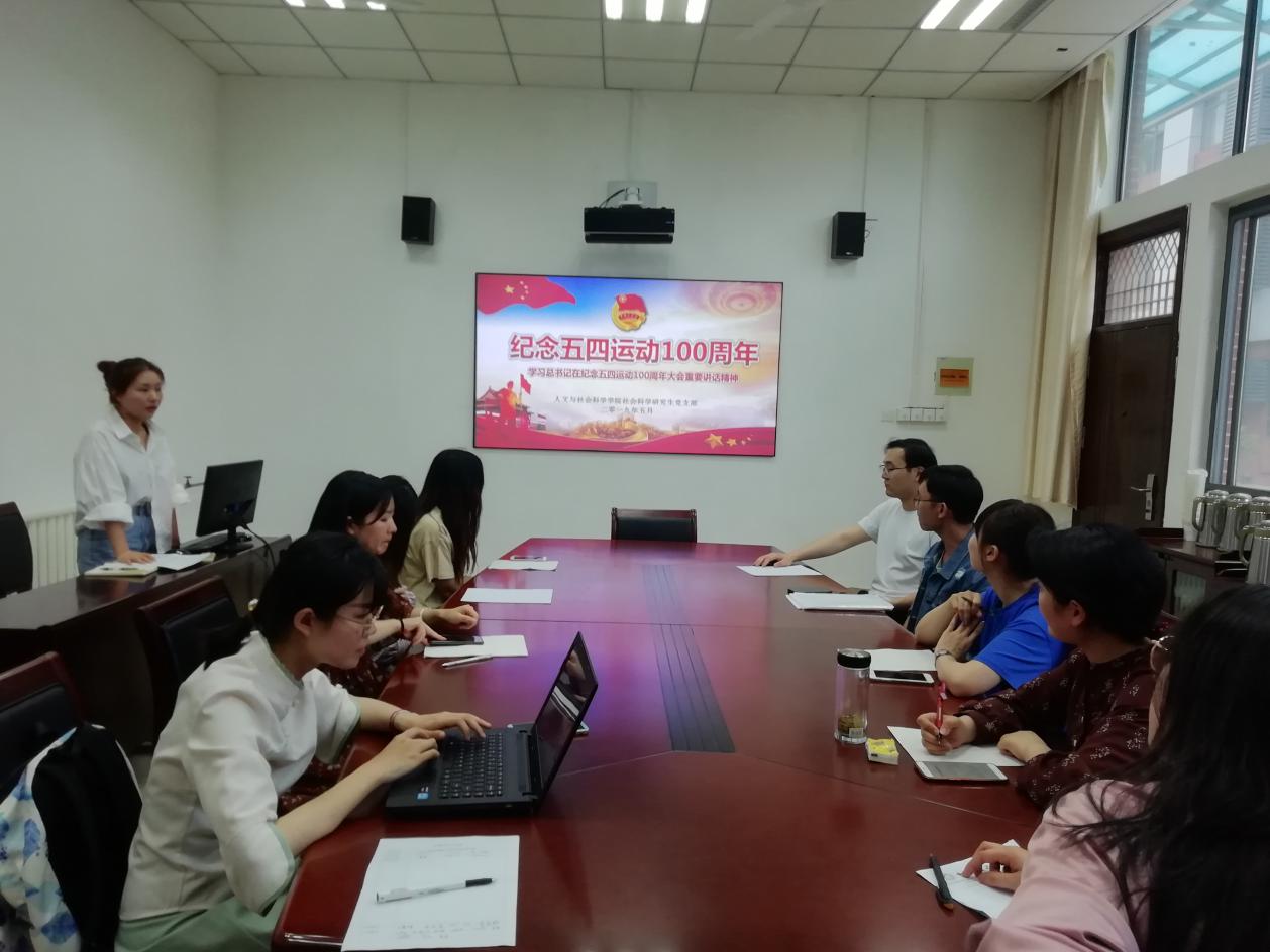 为深入学习贯彻习近平总书记在纪念五四运动100周年大会上的重要讲话精神,坚定理想信念,矢志建功立业,2019年5月21日晚,社会科学研究生党支部于南平101教室开展以“发扬五四精神,争做时代新人”为主题的学习活动,活动由党支部书记王慧楠主持,支部成员积极参加了此次会议。