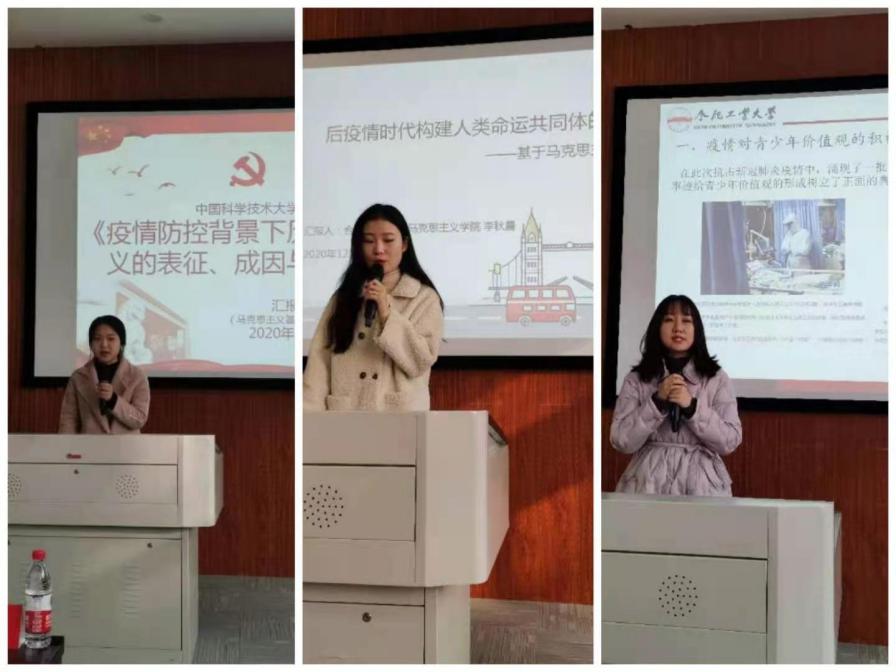 12月13日,2020年度中国科大·合工大·安大马克思主义理论研究生学术论坛在中国科学技术大学马克思主义学院成功举办。本次论坛围绕“后疫情时代的中国发展:理论重思与实践探索”的主题展开交流与讨论,来自三校的30余位马克思主义理论及相关专业研究生携文参会。中国科学技术大学马克思主义学院党总支书记杨保国、吴兆雪教授、潘正祥副教授、方贤绪副教授、赵琼老师、刘海龙老师、颜惠箭老师等应邀出席,论坛由张玉婷同学主持。