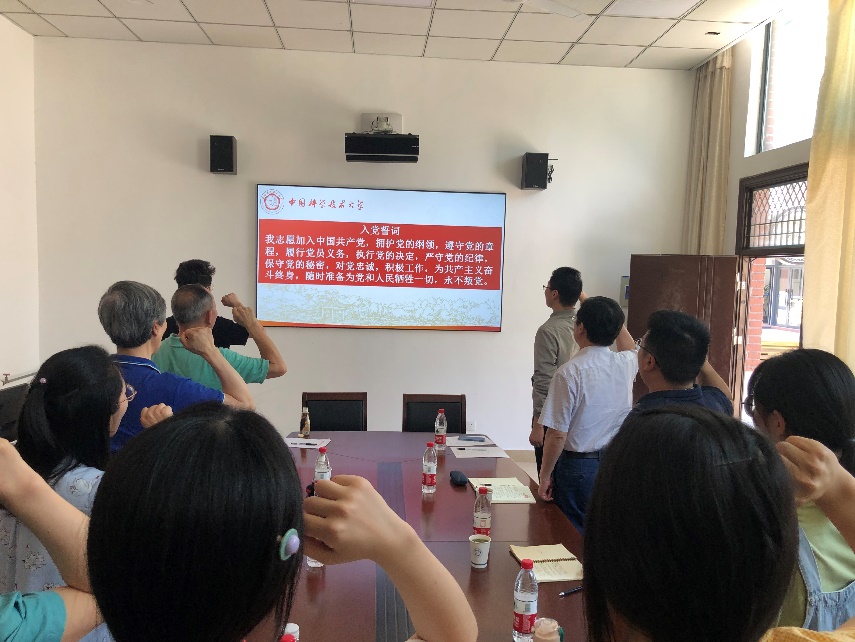 座谈开始前,刘海龙老师带领全体与会人员重温入党誓词,牢记初心使命。集体宣誓后,活动正式进入嘉宾座谈环节。座谈环节由马克思主义学院研究生会主席团成员戴妍妮同学主持。