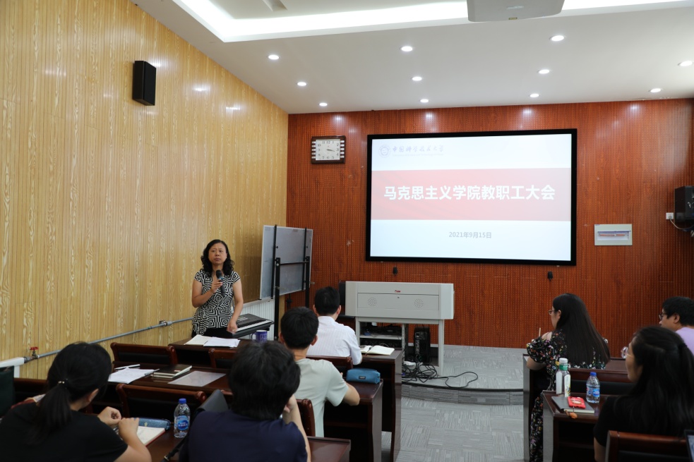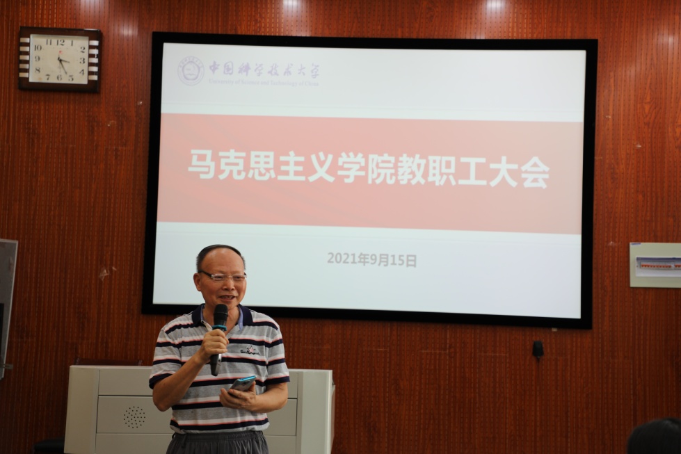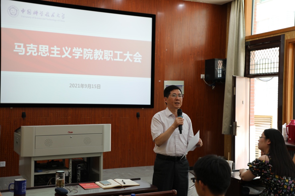 9月15日下午,马克思主义学院召开新学期全体教职工大会,通报上学期学院教学督导等工作情况,布置近期学院重点工作。会议由党总支书记、副院长杨保国主持。