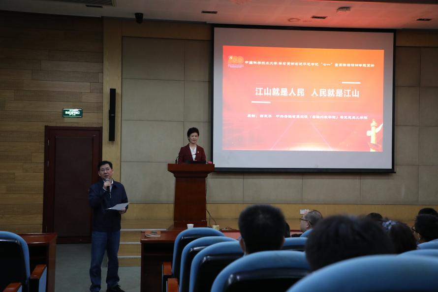 10月13日下午,中国科学技术大学学习贯彻习近平总书记“七一”重要讲话精神专题宣讲团成员、中共安徽省委党校(安徽行政学院)副教授、我校马克思主义学院双聘教师郝永华在东区环境资源楼报告厅作题为《江山就是人民,人民就是江山》的宣讲报告,马克思主义学院、环境科学与工程系师生代表参加了宣讲会,宣讲会由马克思主义学院党总支书记杨保国和环境科学与工程系党总支书记张文真共同主持。