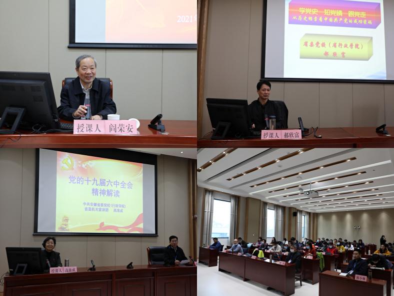 简短的开幕式后,金寨县红军历史研究会会长闫荣安教授生动讲述了《鄂豫皖革命根据地的光辉历程》,安徽省委党校郝欣富教授作《从历史档案看中国共产党的成功密码》专题报告。当天下午,安徽省委党校高淮成教授作《十九届六中全会精神解读》专题辅导报告。