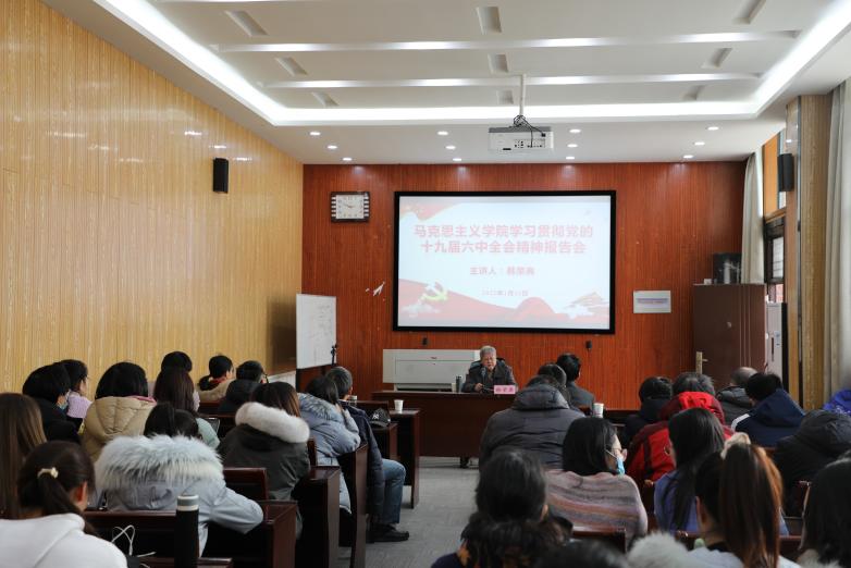 为深入学习贯彻党的十九届六中全会精神,全面深刻准确理解党的百年奋斗重大成就和历史经验,1月12日下午,中国科学技术大学学习贯彻党的十九届六中全会精神宣讲团成员、中国科学技术大学原副校长韩荣典教授在东区南平105教室作党的十九届六中全会精神学习宣讲报告。马克思主义学院师生代表60余人现场聆听了报告。宣讲会由马克思主义学院党总支书记、副院长杨保国主持。