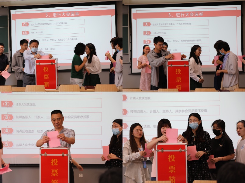 选举结束后,新当选委员刘立作表态发言。他表示将继续弘扬伟大建党精神,坚守“赶考”初心,保持“赶考”清醒,发扬“赶考”作风,走好新的赶考之路,以“我将无我,不负人民”的使命担当为党组织和学院发展贡献智慧和力量。