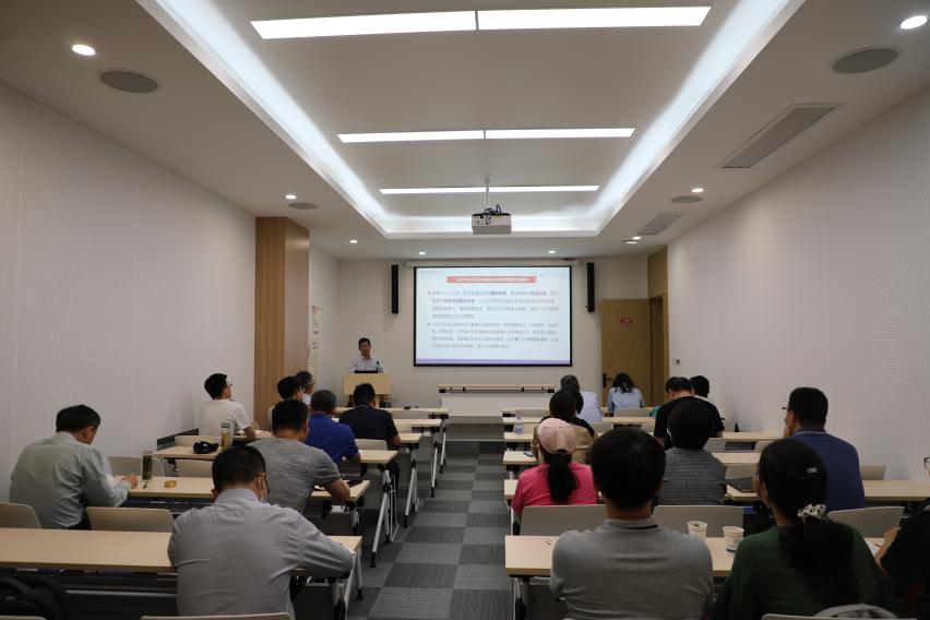 根据主题教育工作安排,6月7日下午,马克思主义学院党总支书记杨保国以“学习贯彻习近平总书记关于防范化解重大风险重要论述精神 切实维护学校学院安全稳定”为题,为学院教工党员上了一场内容丰富、精彩生动的党课。