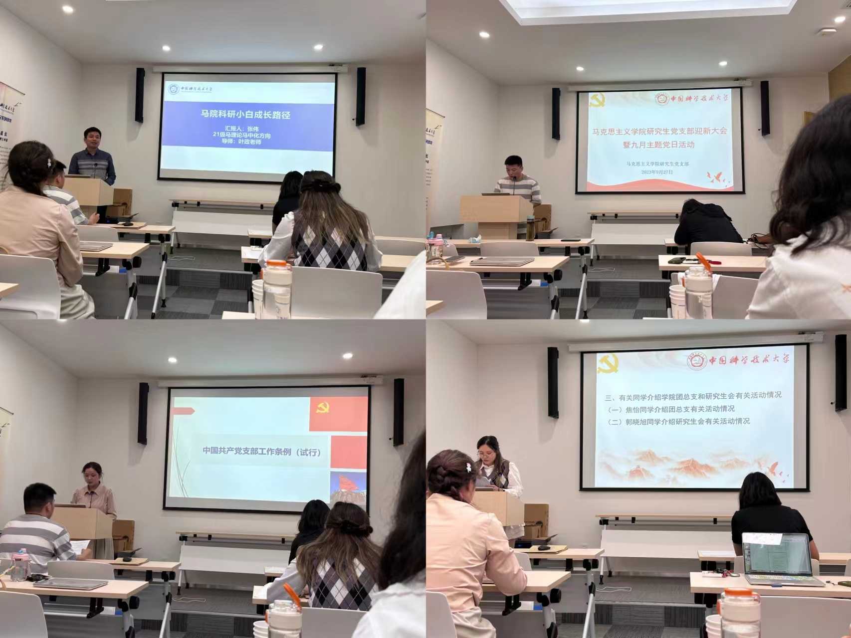 927日下午,马克思主义学院研究生党支部迎新大会暨九月主题党日活动学院108会议室召开,研究生党支部全体党员2023级全体生参。党支部预备党员作个人汇报后,由田开元同志领学《中国共产党支部工作条例(试行)》,焦怡同志介绍学院团总支和研究生会有关活动情况,最后由张伟同志分享自己的科研经验。通过此次活动,同学们对党团知识有了进一步的了解,也对今后积极向党组织靠拢和开展科研有了更大的信心。