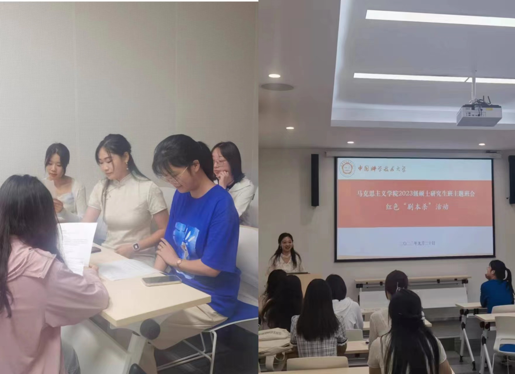 920日晚,马克思主义学院2023级硕士研究生班在学院108会议室召开沉浸式红色教育主题班会,演绎钱斌教授团队设计的大型红色互动推理剧《觉醒年代》中的《传书》剧本,将思政教育与潮流文化结合,同学们更加深刻地领悟爱国主义精神和为国为民的崇高情怀。