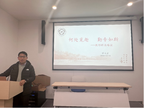 2023年12月18日晚,马克思主义学院“前辈说”系列沙龙第三期在学院108室举办,中国科大附中高新中学校长助理解玉宝老师受邀作“何处觅趣,勤专如斯——教师职业略谈”主题报告,和大家分享他十余载的从教经历,面对面为同学们答疑解惑。本次活动由团总支书记黄鹤老师主持。