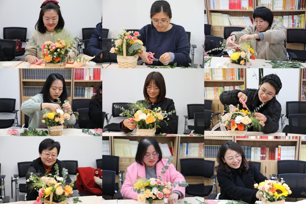 为庆祝“三八”国际妇女节,激励女教师在教育教学工作中锐意进取、拼搏奋斗,3月8日上午,马克思主义学院分工会组织学院女教职工开展“丹心育桃李 巾帼绽芳华”主题插花活动。