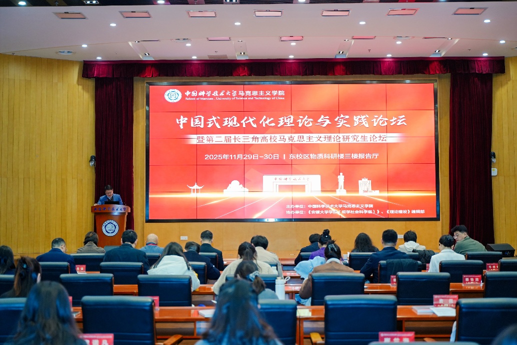 2025年11月29日至30日,为深入学习贯彻党的创新理论,深化对中国式现代化理论与实践的研究阐释,推动长三角地区马克思主义理论学科交流与青年人才培养,由中国科学技术大学马克思主义学院主办,《安徽大学学报(哲学社会科学版)》《理论建设》编辑部协办的“中国式现代化理论与实践论坛暨第二届长三角高校马克思主义理论研究生论坛”在我校东校区物质科研楼成功举办。来自长三角等地区多所高校的专家学者、在读研究生以及期刊杂志代表百余人齐聚科大,共襄学术盛会。