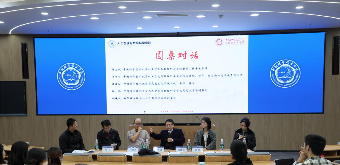 为引导青年学子拥抱科技浪潮、践行科技报国使命,10月22日晚,马克思主义学院团总支联合人工智能与数据科学学院团委,立足学科优势,共同举办智启未来“人工智能+”圆桌对话会。人工智能与数据科学学院钟志诚教授、冯文杰特任教授受邀做主题分享,马克思主义学院党总支书记褚建勋教授,人工智能与数据科学学院党总支常务副书记阳思老师,新华社安徽分社对外新闻采访部副主任何曦悦老师受邀出席并参与对话交流。