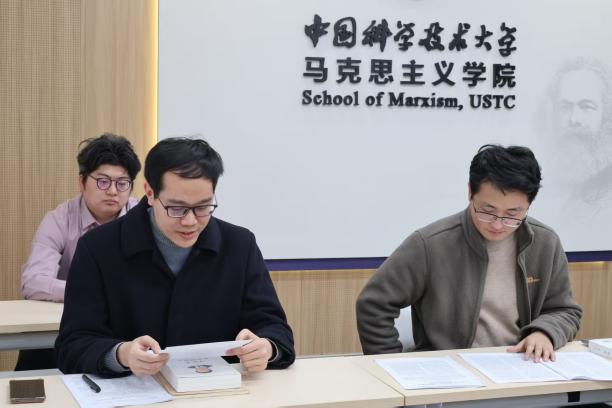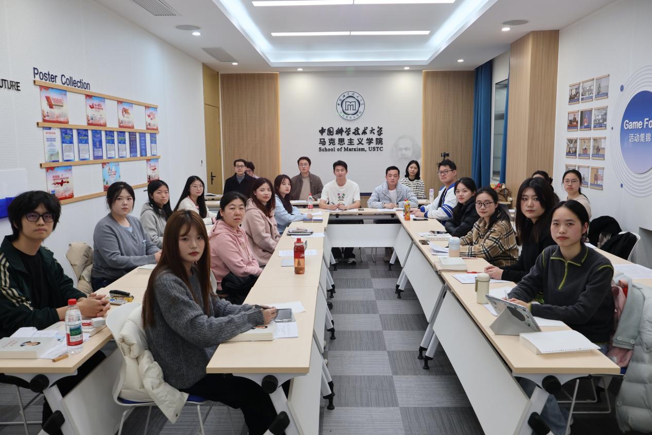 2025年12月19日,中国科学技术大学马克思主义学院与合肥工业大学马克思主义学院读书小组在中国科大东校区马克思主义学院108会议室,围绕“生产力发展与民生保障的理论与实践问题”主题,联合开展线下读书分享会。合肥工业大学唐莉教授进行线上指导,中国科学技术大学苏振源老师、丁浩老师线下进行总结评价,王晓凯同学担任主持,共计22名读书小组成员线下参与此次活动。